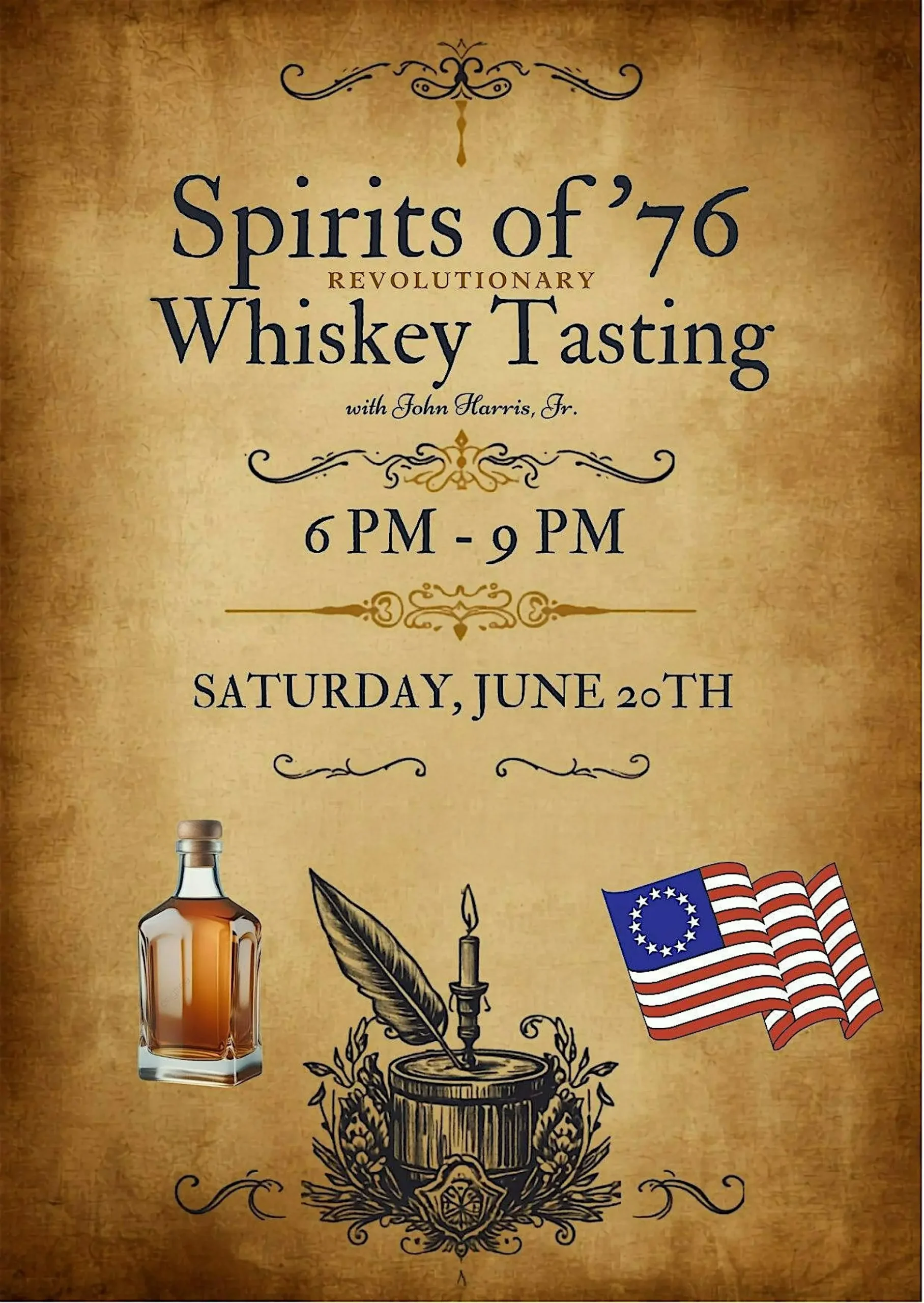 Join John Harris, Jr. for a fun, in-person whiskey & spirits tasting inspired by the bold spirits of 1776! Spirits of ’76: A Revolutionary Whiskey Tasting with J...