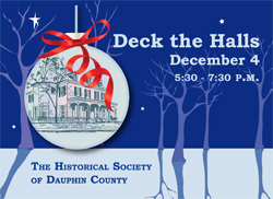 Deck the Halls is the major fundraising event for the Historical Society if Dauphin County. Income from the event is crucial to supporting our educational programs and research archives, and to maintaining the National Landmark Harris-Cameron Mansion, built in 1766 and entrusted to our care since 1941.