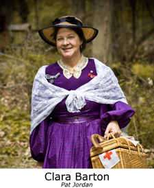 Clara Barton will be portrayed by American Historical Theater actress, Pat Jordan, who has interpreted Miss Barton at venues throughout the United States.