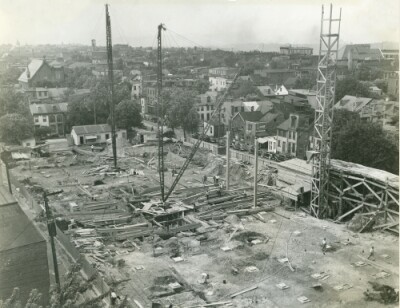 Early Construction of the PA Liquor Control Building (c1940) In 1938 the State announced the LCB building would be constructed on the block bound by Forster, Capital, Boas, and James Streets. The Public Works Administration would fund part of the $1.1 million cost. |
