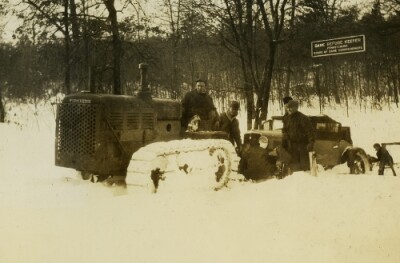 Elizabethville CCC Camp Pulling a Car through Snow (1933-1937)