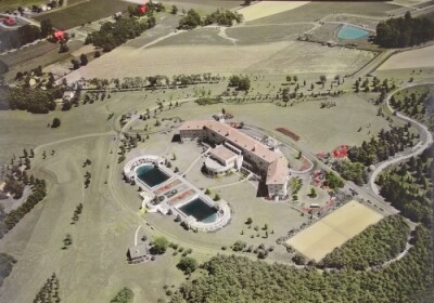 The Hotel Hershey Grounds (c1935) Prominent in this view is the Circular Dining Room as well as the influence of Mediterranean architecture on Milton S. Hershey’s design requirements. |